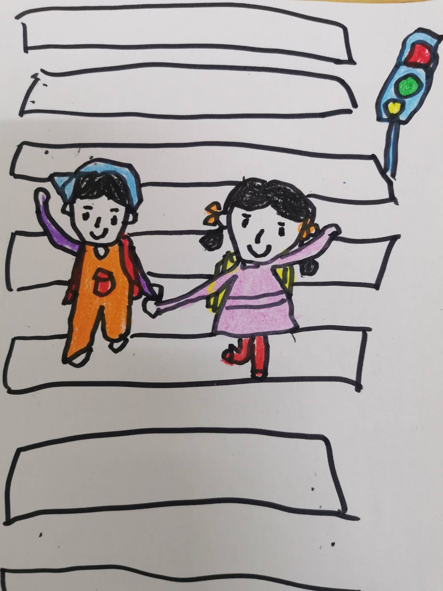 我们要注意安全,过马路要走人行道,两个人要手拉手一起去秋游。
