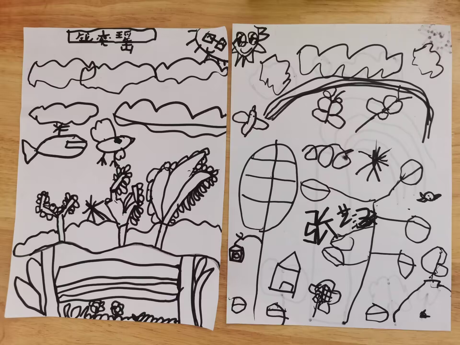 回到教室后,孩子们迫不及待得把自己的所见所得都画了下来。