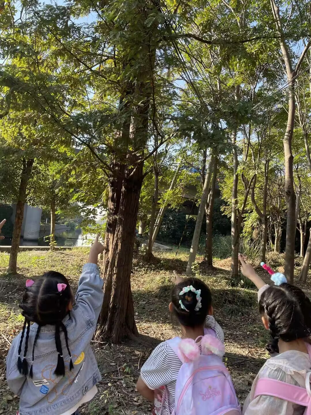 湛蓝的天空,温暖的阳光,孩子们撒下一路欢歌,欣赏一路如画风景,走过弯弯曲曲的小路,踩过沙沙作响的树叶,他们见到了枫树、柿子树、香樟树等植物,感受到了秋天的美丽,赋予孩子们无限的遐想。