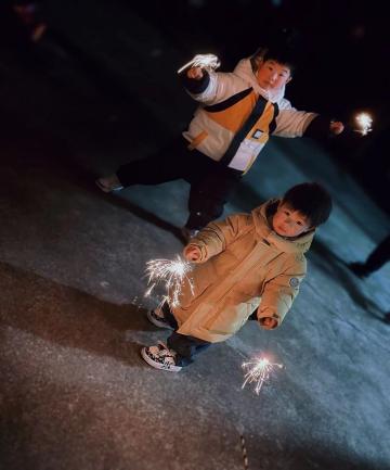 放鞭炮,是传统年俗之一。据说鞭炮起源于爆竹,这个习俗在中国已有2000多年的历史了。孩子们在夜晚点燃了岁火,燃起新年的希望。