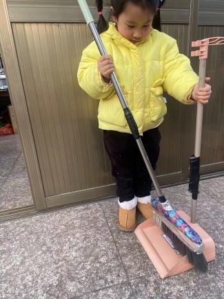 春节前夕除尘扫屋有扫除污秽、迎新接福之意。这是民间过年传统习俗之一,小朋友参与力所能及的劳动,家庭小主人的责任意识油然而生。