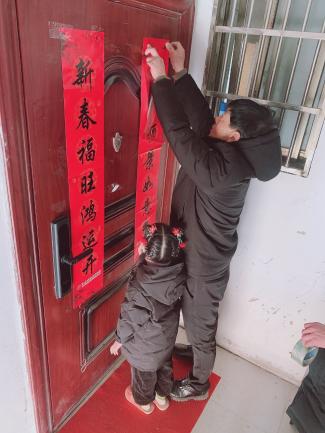 贴春联,贴福字,红红火火又一年。小朋友参与家庭新年布置,让中国传统文化习俗在亲身经历、实际操作中渗入心田。