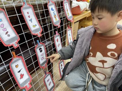 孩子们徜徉在灯谜世界,阅读着彼此绘画的图案灯谜,争先恐后地猜测着谜底。当听到老师说:“恭喜你,答对了!”孩子们又兴奋又自豪。