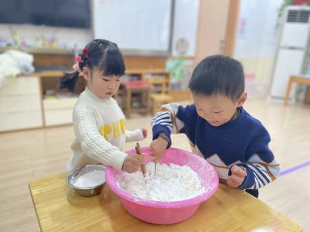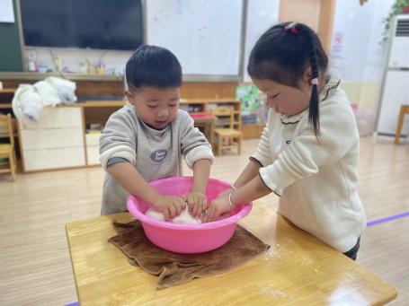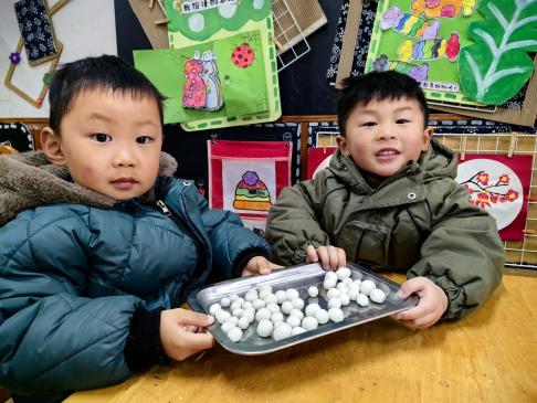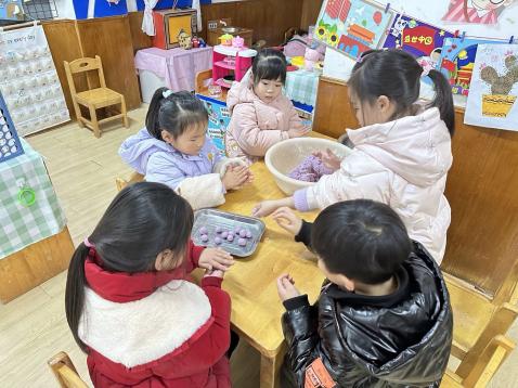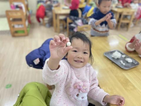 瞧!孩子们卷起衣袖,洗干净小手,迫不及待地开始做汤圆啦。