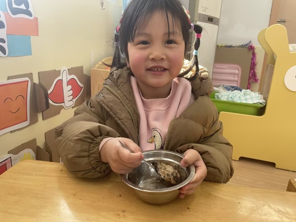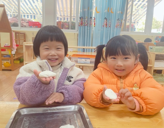 孩子们吃着糯糯的糕,露出了甜甜的笑,自己动手做出的糕,好像比平时更加美味呢!