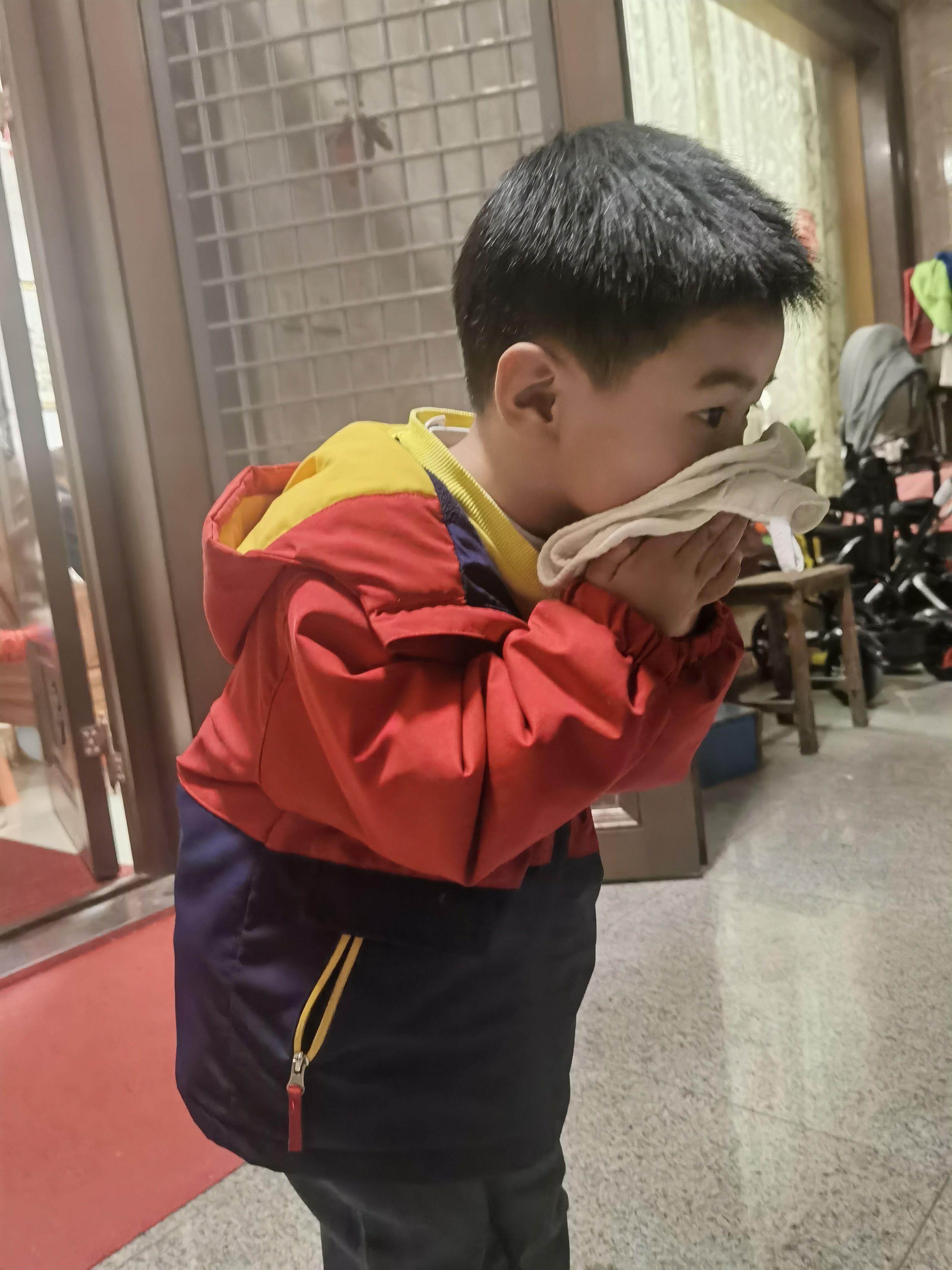 孩子们在爸爸妈妈的指导下,用湿毛巾捂住口鼻,弯腰迅速从家里撤离,开始了一场居家逃生演练实践。