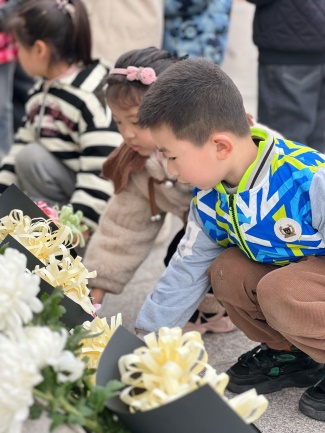 出发前,孩子们全神贯注地聆听着老师讲述清明节的起源,以及革命先烈们的英勇事迹。先烈们的巨大牺牲深深打动了他们,他们的眼中闪耀着对英雄的崇敬之情。随后,孩子们用稚嫩的小手制作了花束,孩子们在思考、操作的过程中了解了此次活动的重要意义。