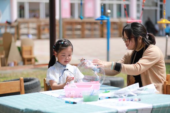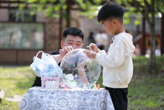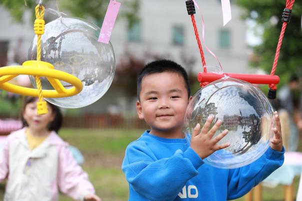 本次“寻春”活动共开设了5个活动项目,分别为:手绘风筝、涂鸦风车、手工diy波波球、风铃、树叶喷印、保鲜膜diy。小朋友们利用各种材料尽情创作,和春天来场约“绘”,通过这些活动,幼儿记录下自己眼中的春天,提升了幼儿的创造力、观察力和审美能力,从中感受到大自然的美和生命的力量,激发了幼儿对生活的热爱。大班哥哥姐姐们在西操场运用攀爬架、梯子合作建构,组合、拼装搭建成丛林探险,吸引着中班小朋友的目光。通过探险,增强了幼儿的平衡性、灵敏性,促进四肢协调发展。