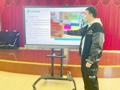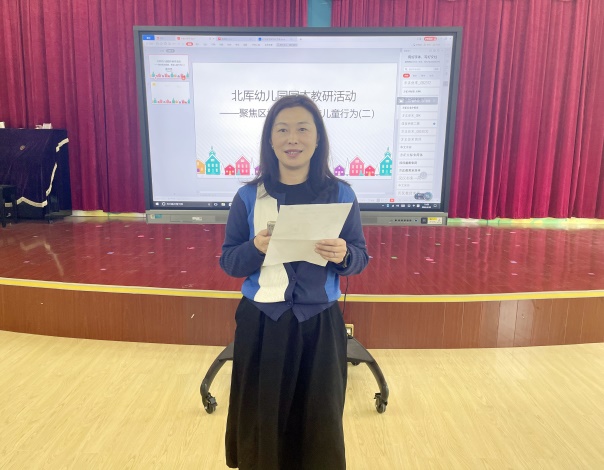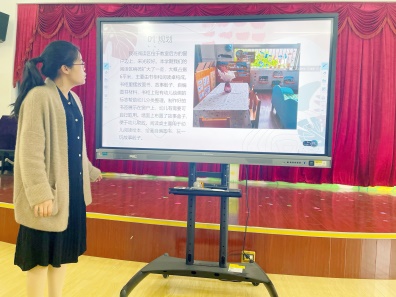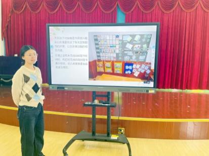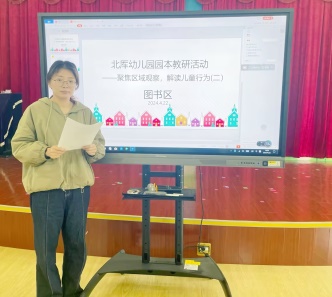 接下来,请各园区教师代表分享阅读区的创设和组织情况,重点介绍了本班教师的规划、调整和观察记录情况。