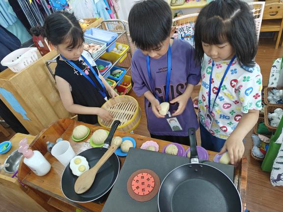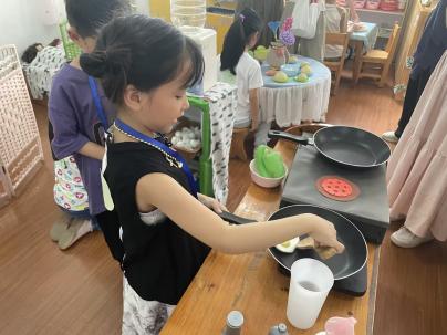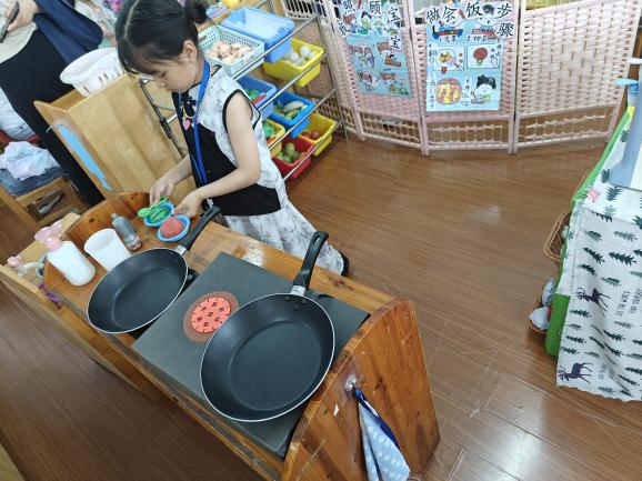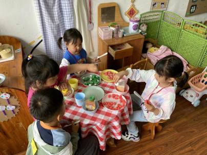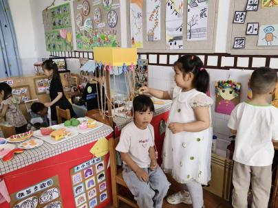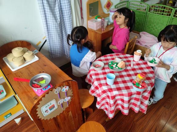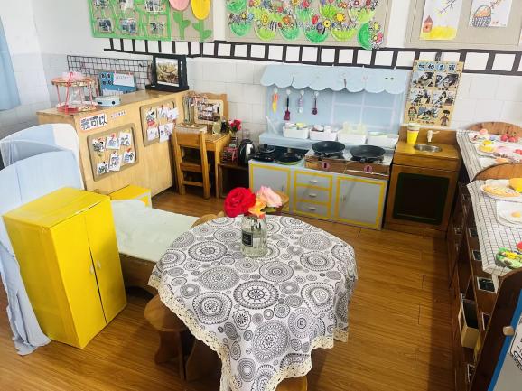 本部中三班:我们班充分把握中班幼儿的年龄特征,设置有厨房、餐厅、卧室等。使幼儿游戏时候的内容更加明确。结合幼儿对游戏的需求进行改变,增加低结构、生活化材料,提升材料的可操作性与游戏的创造性。同时保留了部分成品材料,适合个性化发展,使不同经验的幼儿都能在其中找到适宜的材料。