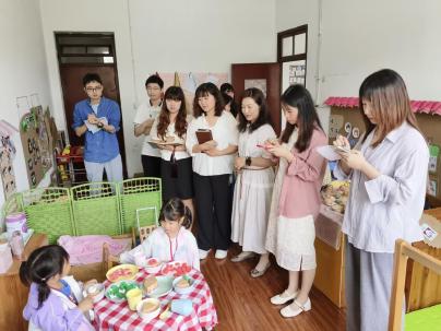 角色扮演是幼儿喜爱的游戏,他们通过扮演不同的角色,通过游戏和材料探索家庭和工作场所中的社会角色。为了更好地了解幼儿在角色扮演区的游戏水平,积极贯彻落实《3-6岁儿童学习与发展指南》《幼儿园保育与教育质量评估指南》下的课程游戏化精神,通过观察、解读幼儿游戏行为,深入有效地支持幼儿在游戏中成长与发展。2024年5月24日,北厍幼儿园以“聚焦区域观察,解读儿童行为——扮演区”为主题开展了园本教研活动,本次活动特邀睿思童幼儿园园长及骨干教师共同参加。