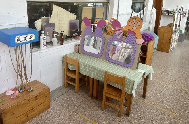 本部中四班:我班扮演区位于教室外走廊,主要有娃娃家、美发屋以及小医院,方便幼儿们随时进入进行游戏并进行联动。环境温馨舒适,有利于幼儿放松身心,投入游戏。材料有序进行分类,并选择一些自然、真实的材料供幼儿游戏,贴近幼儿的生活。幼儿们在扮演区里可以扮演不同的角色,如医生、护士、理发师、顾客、家长和宝宝等,通过模仿成人世界中的行为和活动,提高他们的社交技能、语言表达能力和动手能力。幼儿园扮演区是一个重要的学习和发展空间,可以帮助幼儿们在游戏中学习新知识,提高各种技能,同时也能让他们享受到快乐的时光。