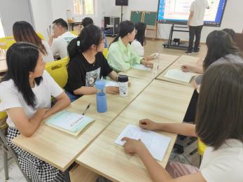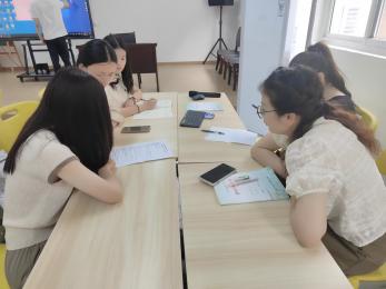 观摩结束后,老师们回到会议室,开始整理、分析和梳理观察记录表。大家结合自己在现场的观察和感受,结合《指南》发展目标,全面分析孩子们在扮演区中的行为表现和发展需求。同时,也针对如何优化扮演区的环境、材料和游戏情况进行了讨论和交流。