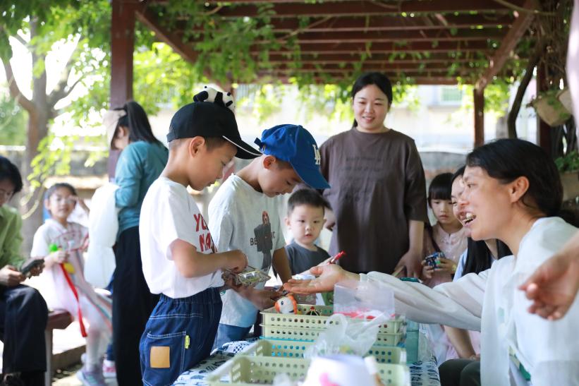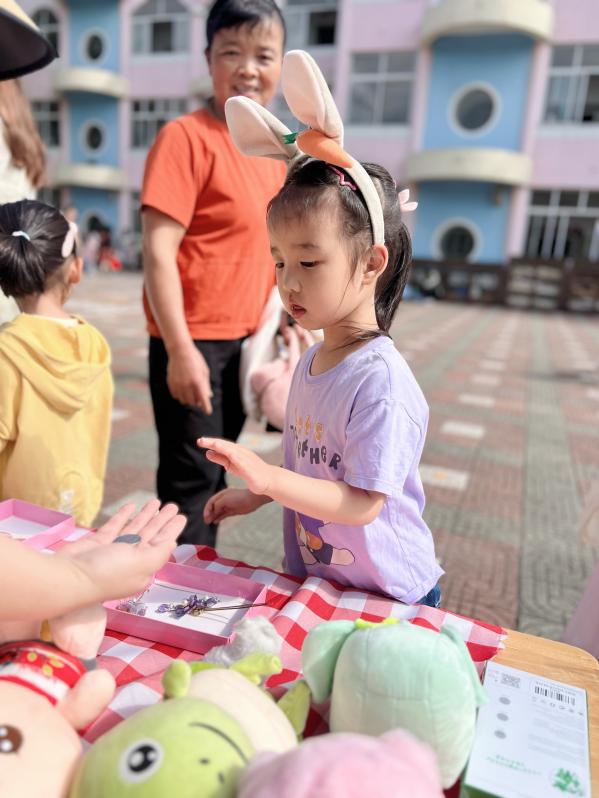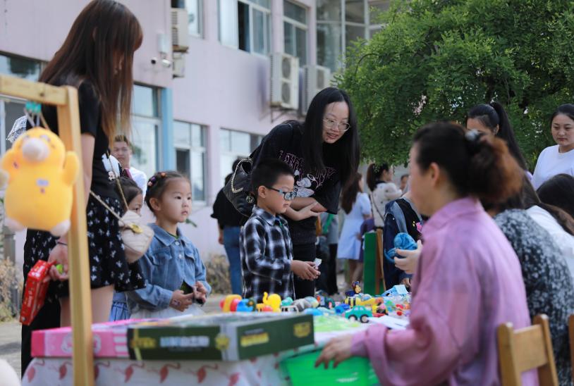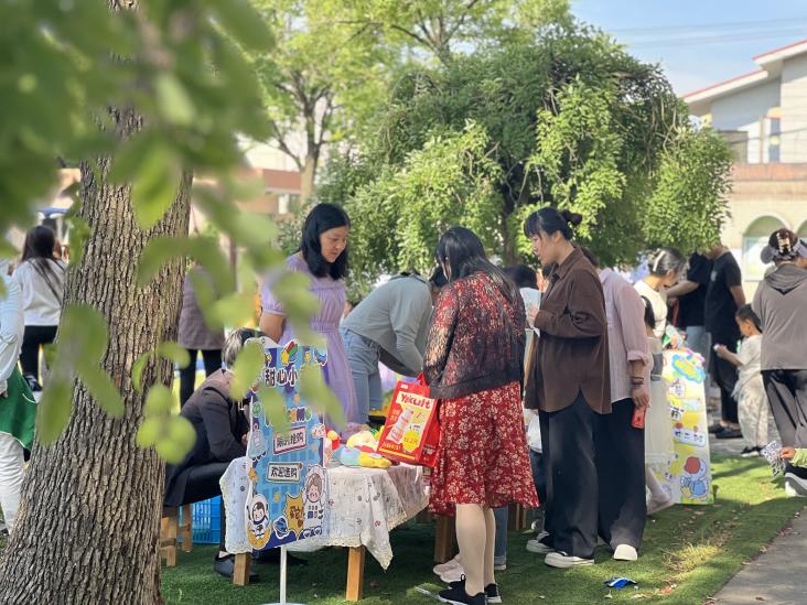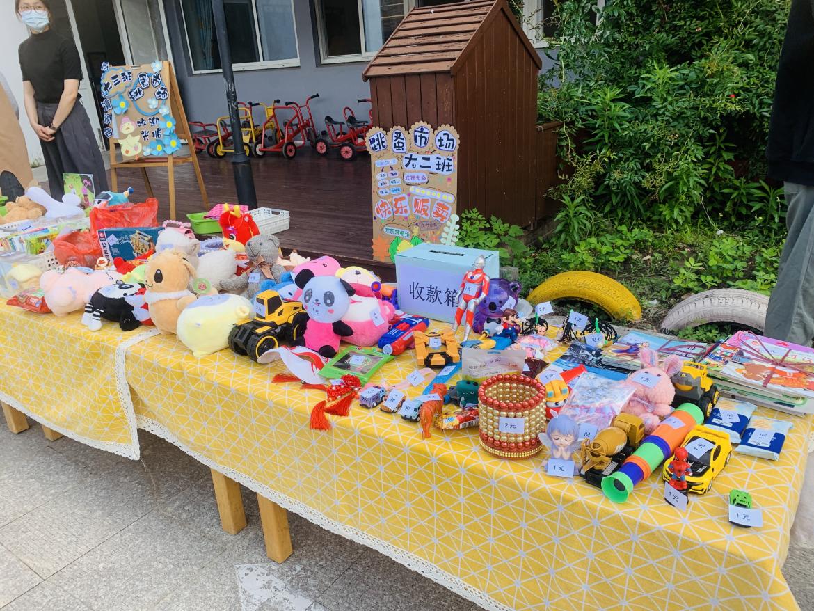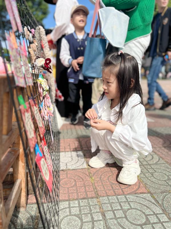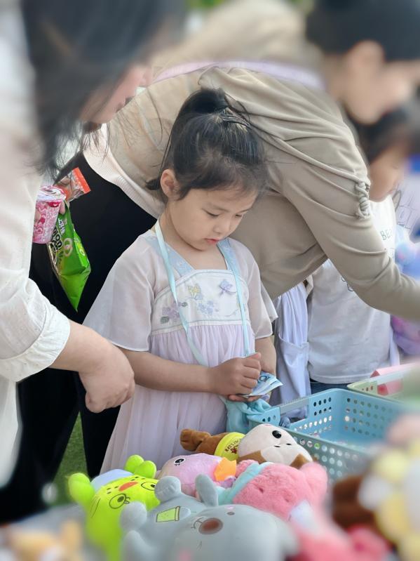 孩子们带来了心爱的宝贝:有趣的玩具、精彩的图书、亲手制作的小饰品……看,还有这一块块充满创意的宣传板,那是孩子们对活动满满的期待。一个个富有童趣的摊位依次排开,孩子们变身小小摊主,展示着自己精心准备的各类物品。