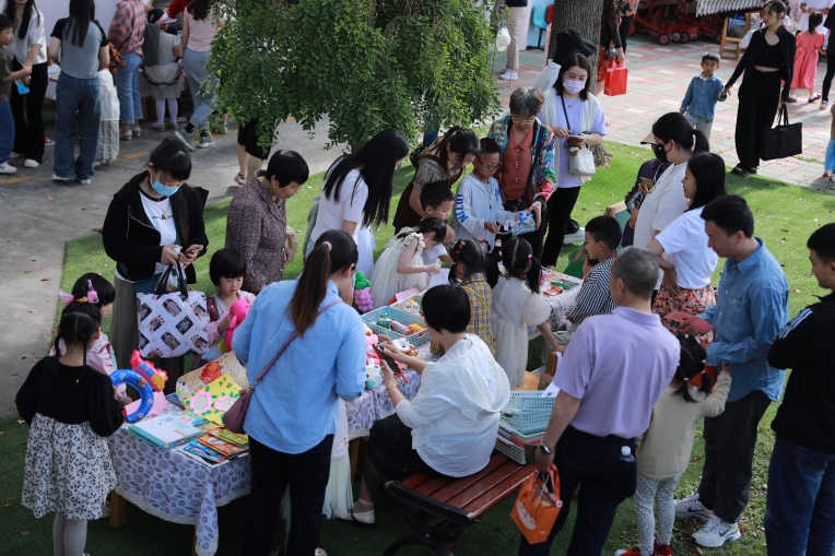老师和家长们也参与其中,引导孩子们进行交易,鼓励他们大胆交流,还学会了讨价还价呢。在一片欢声笑语中,孩子们不仅体验到了自主交易的乐趣,还锻炼了他们的沟通能力、社交技巧和理财意识。看着孩子们的成长与进步,大家都情不自禁地纷纷用相机记录下了这欢乐的时刻。