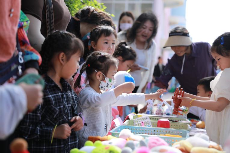 在洒满阳光的幼儿园里充满了生机与或活力,跳蚤活动的热闹与自由玩耍的快乐完美融合。笑声在空气中回荡,有的孩子展示着刚刚淘到的玩具,有的孩子在幼儿园内各个角落尽情玩耍。