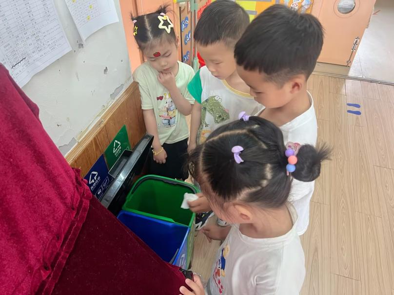 为萌发幼儿垃圾分类意识,提升垃圾分类能力,形成垃圾分类习惯。近期,北厍幼儿园开展“圾”时分类 绿色“童”行活动。