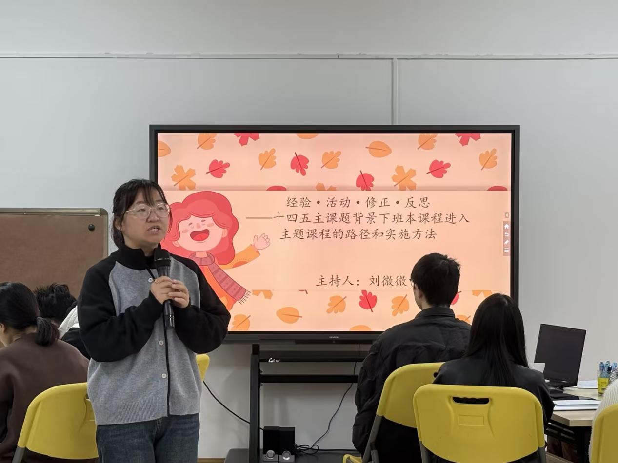 保教主任刘微微老师在会议伊始介绍了十四五课题中园内的课程故事收集的主要情况,并且对接下来的中班组主题研讨活动提出要求,请中班组教师围绕《秋天真美丽》主题实施中“班本课程进入主题课程的路径和实施方法”展开中审议研讨活动。