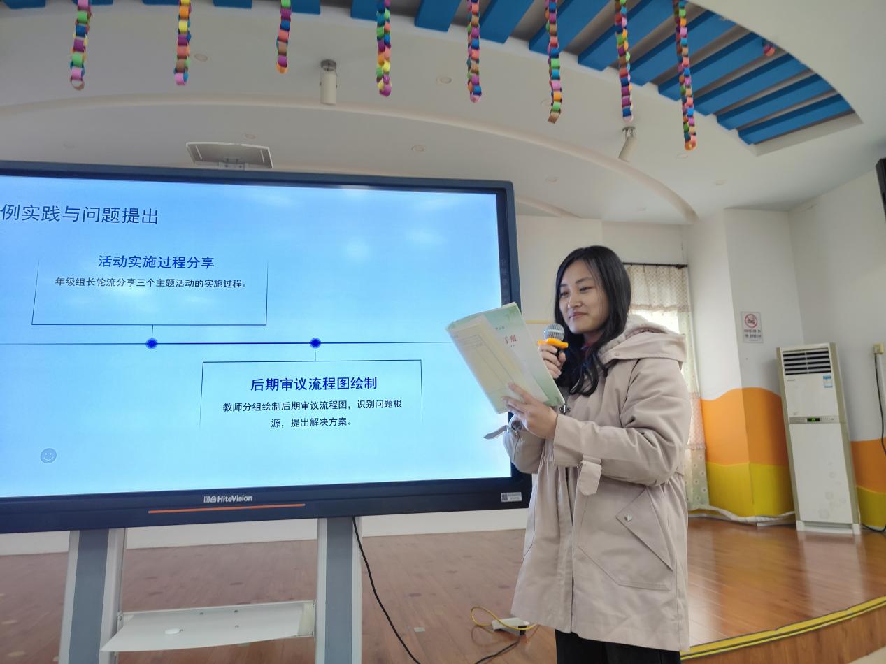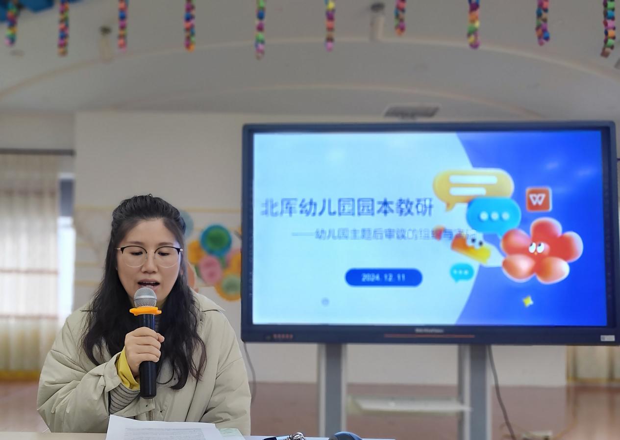 在幼儿园教学实践中,主题教学活动是幼儿学习与发展的重要组成部分。为了确保主题教学活动能够持续有效地促进幼儿全面发展,需要定期进行主题后审议,以总结经验、发现问题并提出改进措施。2024年12月11日,北厍幼儿园开展了幼儿园课程审议专题教研第四次活动,本次教研活动旨在通过系统化的组织流程,提升教师对主题后审议的认识与实践能力,促进教师间的交流与合作。