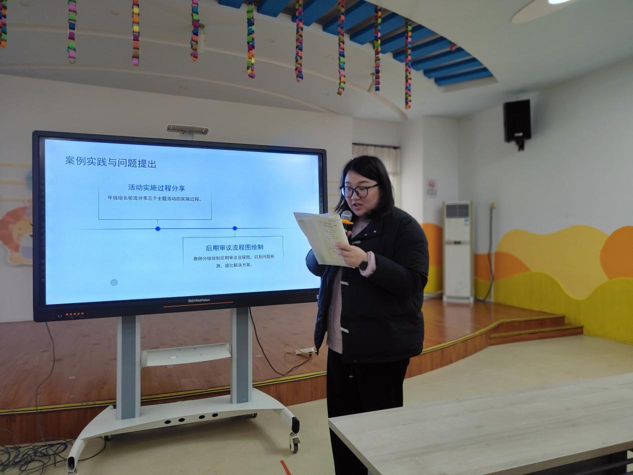 保教主任张丽红老师详细介绍了本次教研活动的背景、目的及注意事项,强调主题后审议在提升主题活动质量中的重要作用。
