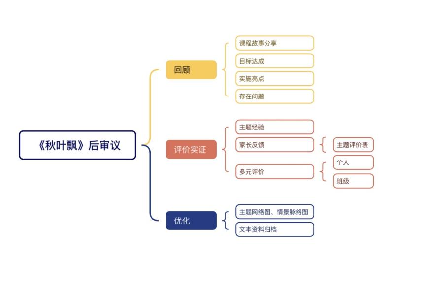 秋天是一个美丽的季节,小中大不同年龄段教师在分别组织实施《秋叶飘》《美丽的秋天》《乐在秋天》三个主题活动后,开展了后审议活动组织的规划。
