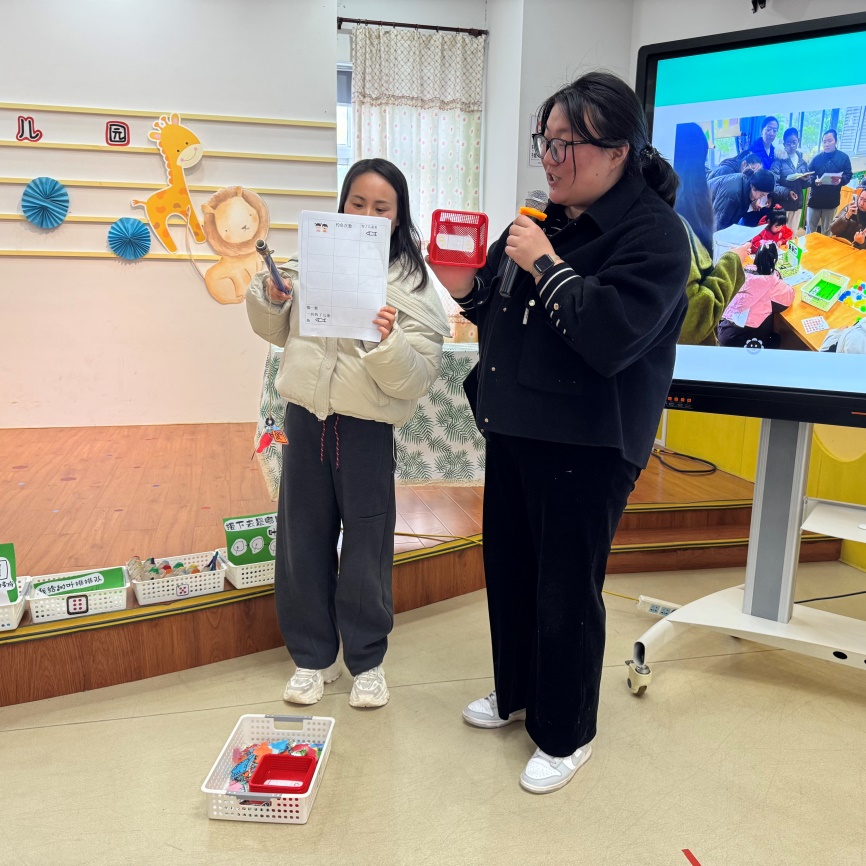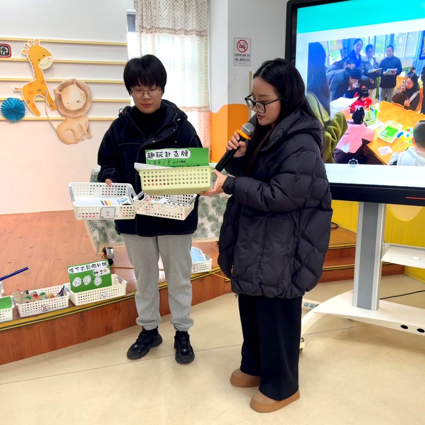 观摩结束后,教师们围绕“幼儿玩的最多的是什么游戏材料?”展开,结合观察进行了介绍。