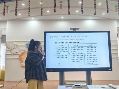教师分组研读相关教育书籍、期刊文章,《3 - 6 岁儿童学习与发展指南》中数学领域部分、以及《0-8岁儿童环境创设》数学区部分、《幼儿园数学领域关键经验丛书》等专业书籍。领读人结合前期对本班幼儿数学学习情况的调研,分析当前数学区材料投放是否符合指南中对各年龄段幼儿数学学习目标的要求。