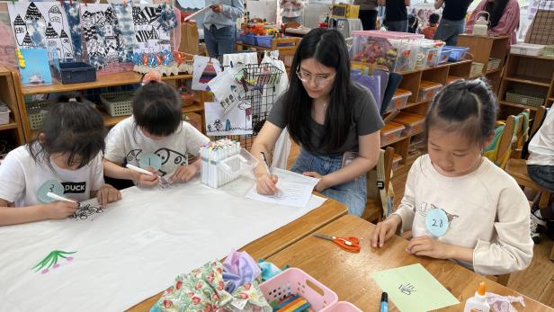 第三组老师在数学区、布衣坊、美工区使用核定法进行观察。
