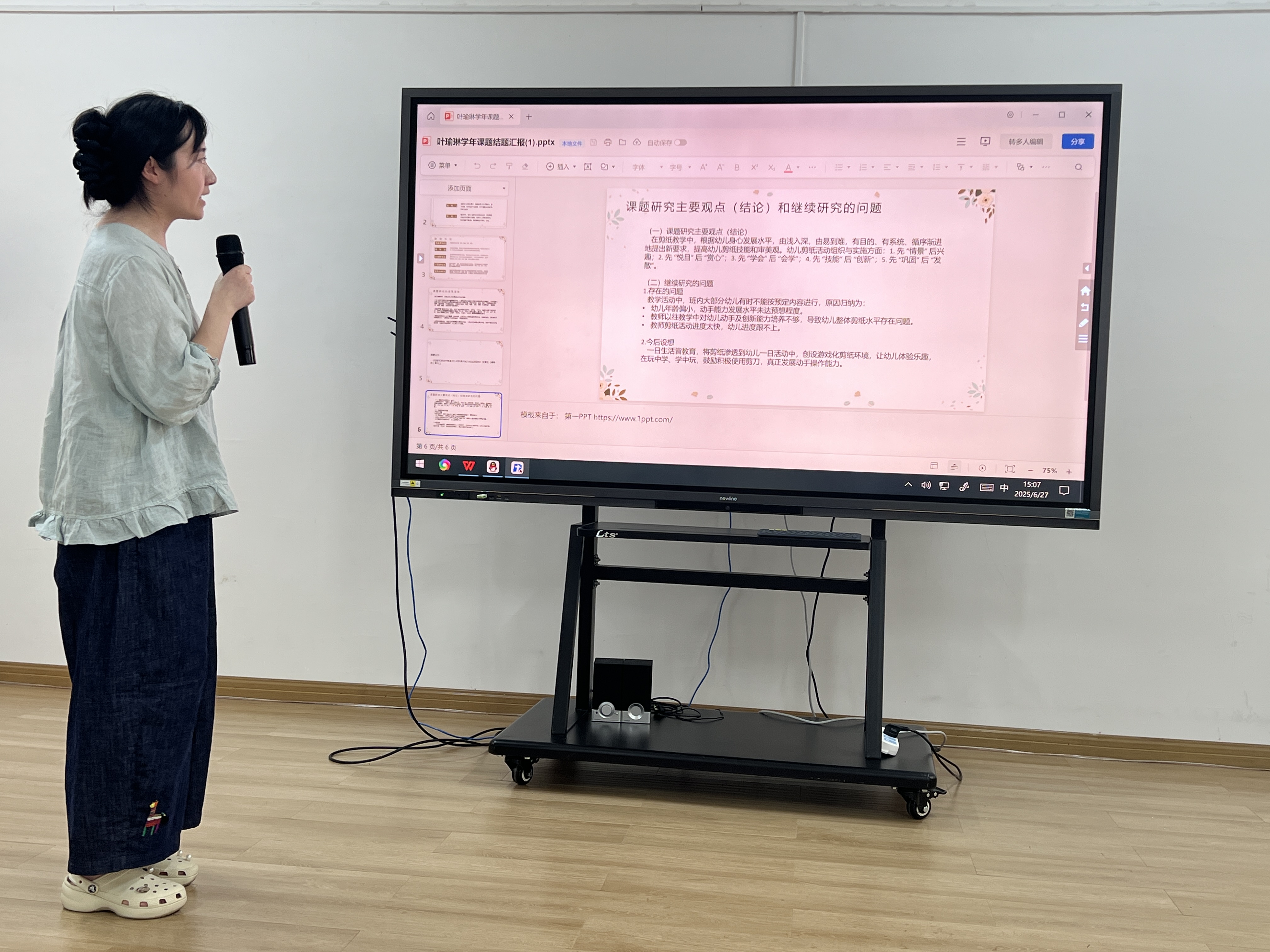 教育科研是滋养学前教育发展的源头活水,也是教师专业成长的坚实阶梯。为扎实推进园所教科研工作,6月27日下午,北厍幼儿园开展了一场课题结题汇报活动。此次活动聚焦幼儿发展核心,由园所科研负责人刘微微老师主持,教师齐聚一堂,共同分享课题研究成果与收获。