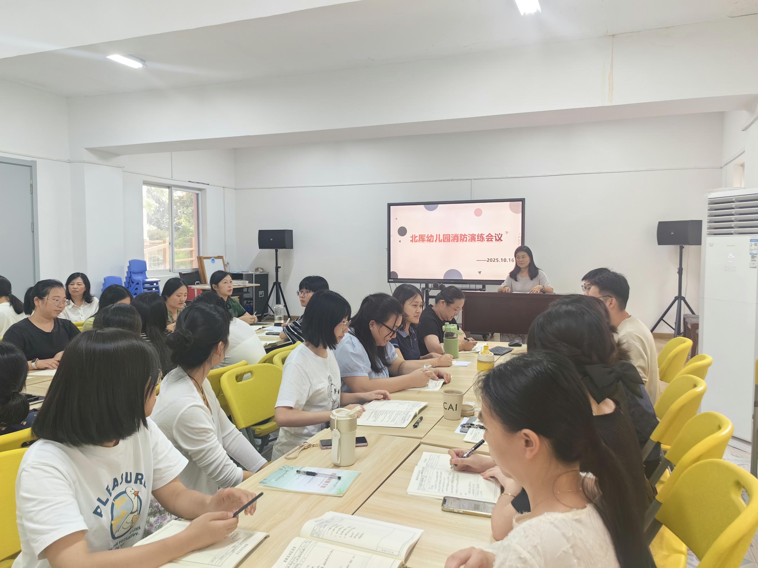 演练前,幼儿园召开专项部署会议,由潘利琴副园长牵头详细解读演练流程,明确各班疏散路线与教师职责分工,确保演练过程责任到人、科学有序,为活动安全有效开展提供有力保障。