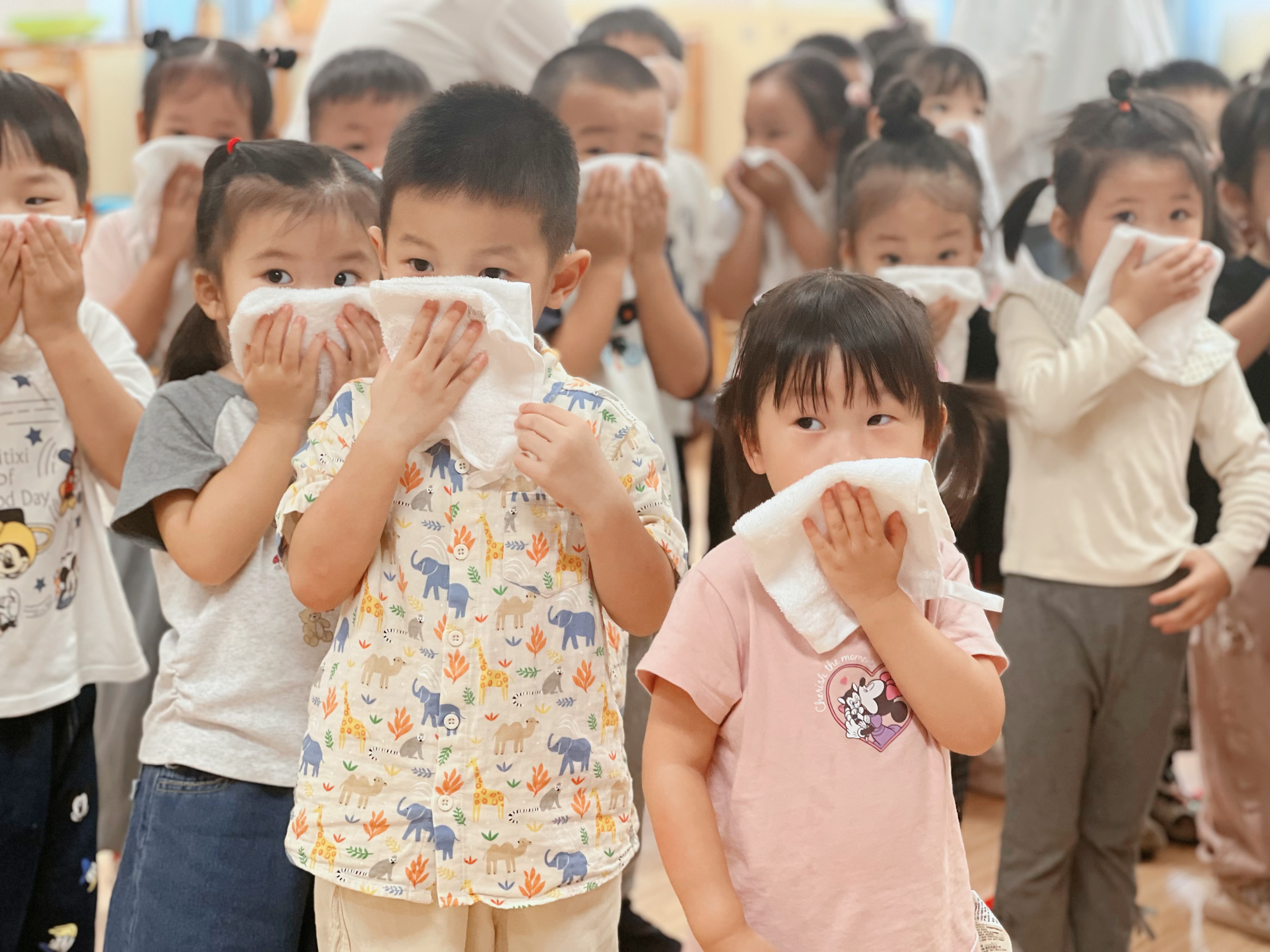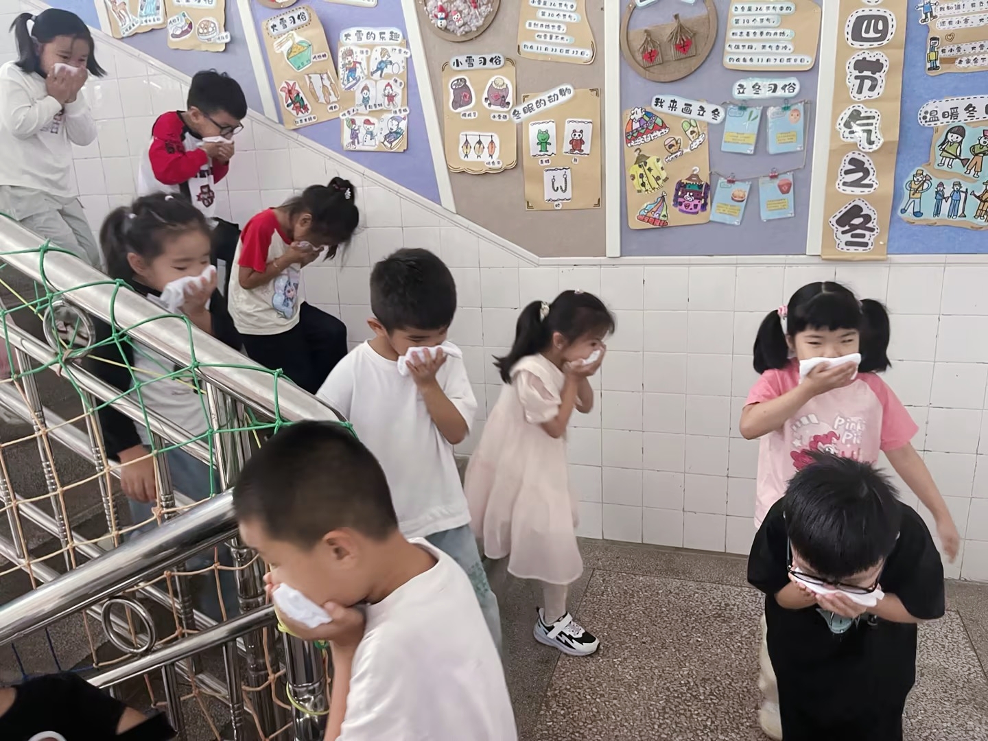 随着消防警报响起,全体教职工迅速响应,指导幼儿用湿毛巾捂住口鼻,弯腰低姿沿预定路线撤离。孩子们在老师保护下冷静、快速集中至安全区域。教师及时清点人数并上报,全程做到紧张不失序,迅速又有序。