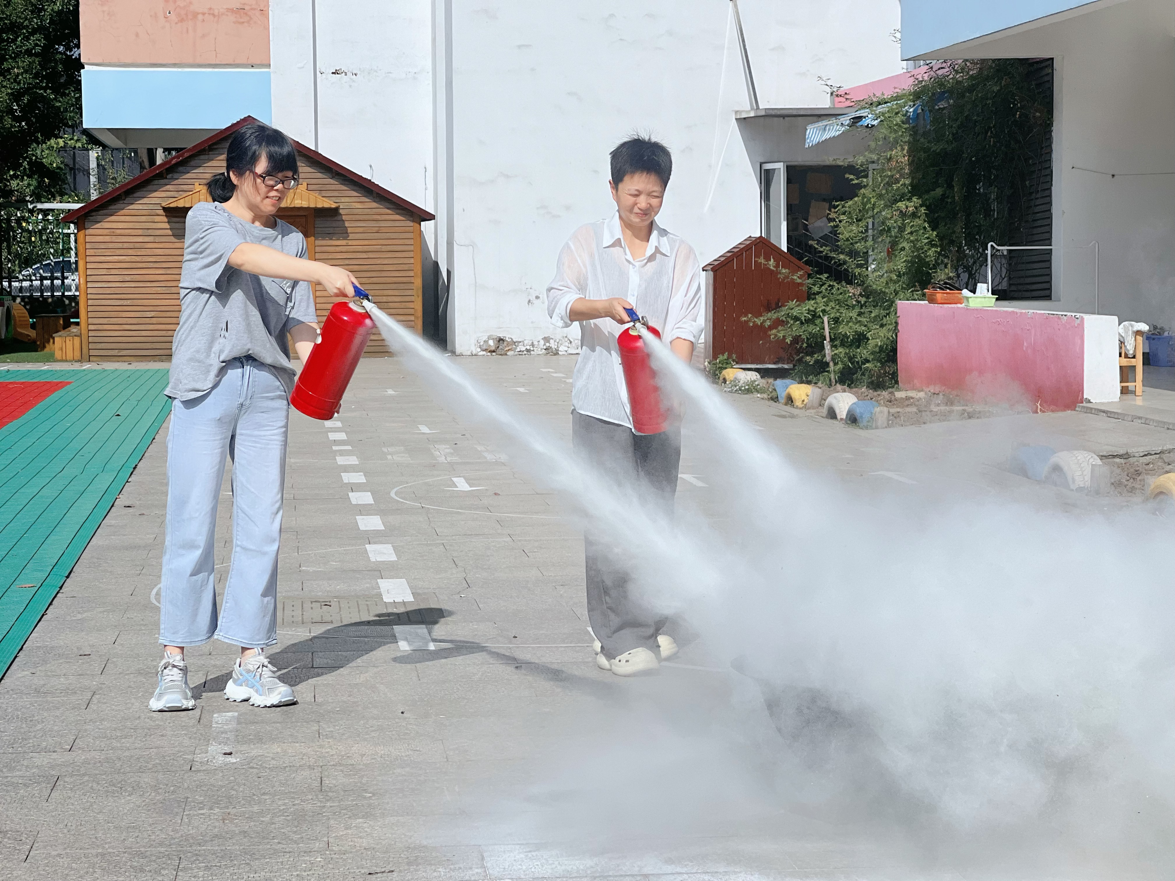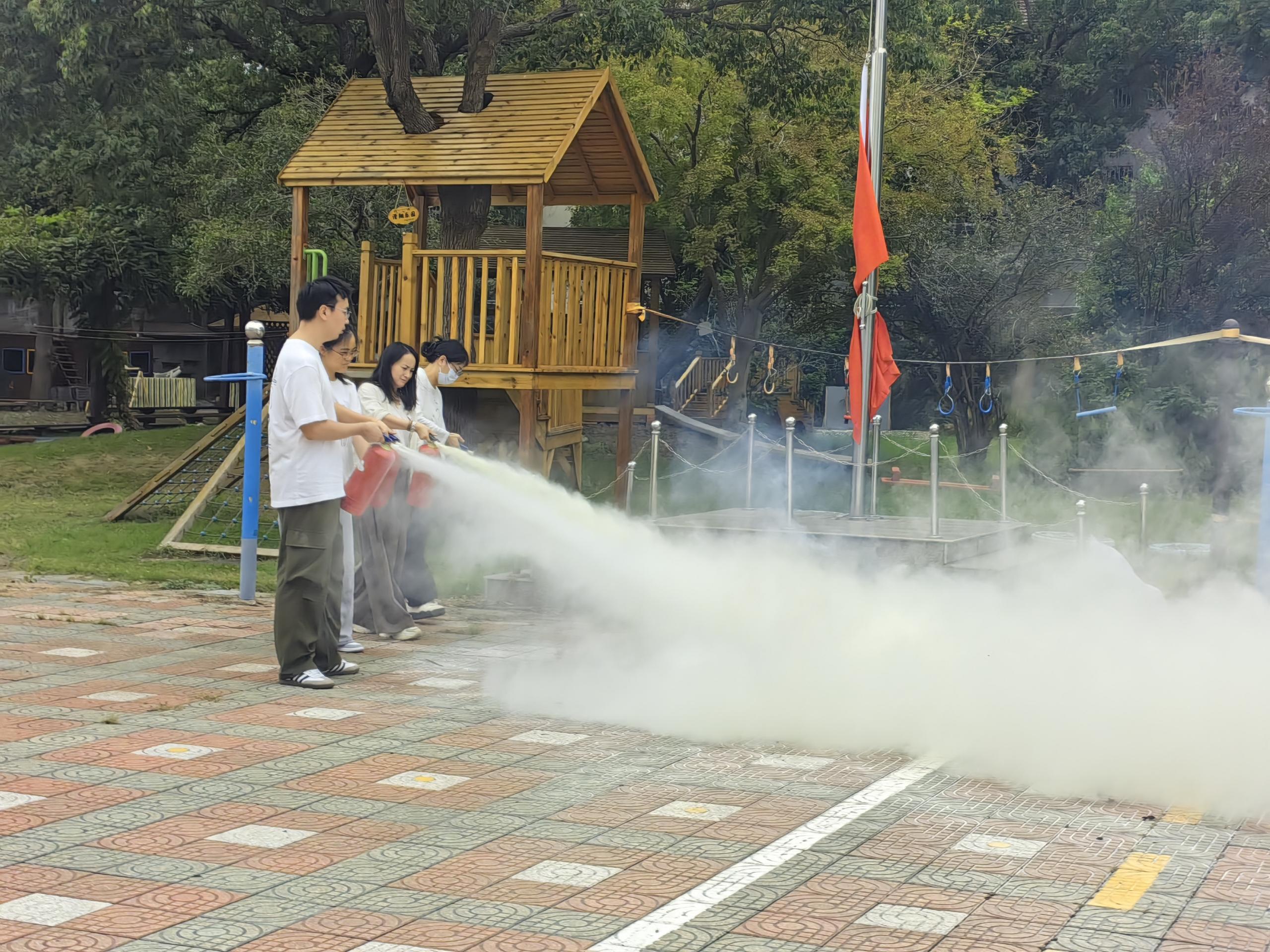 演练还设置了灭火实操将演练环节。面对模拟的火源,教职工们沉着冷静,按照规范步骤操作灭火器进行扑救。这一过程不仅提升了团队的实战技能,也为孩子们上了一堂生动的安全课。